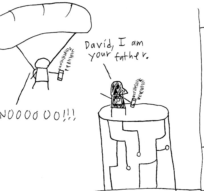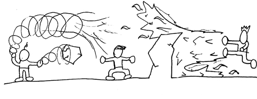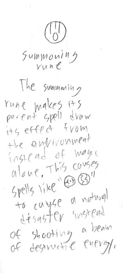 Now to cheer everyone back up again, I have built a masterwork piece of creativity!  Ladies and Gentlemen, I present to you, the Cyrus Zentzis Magic System 5000!  It’s quite a read.  It took me 3 days to compose and I am very proud of it.  I came up with it one day while drawing a picture of a wizard asleep in his study, surrounded by magical apparatus.  I later started thinking up what kind of spells he would use and how, then I began writing those down onto pieces of paper, compiling what is now this full documented guide for magic.  I can easily see implementing this into the Dungeons and Dragons set I got for my birthday!