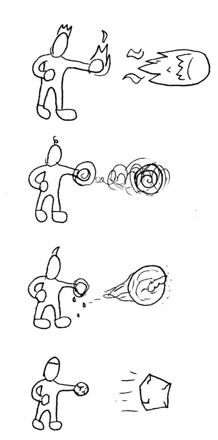 And now, FINALLY, introducing, the Elemental Warriors!!!  Earth!  Water!  Air and Fire!  And let’s not forget their secretive cousins, Decay and Energy!  Behold!!