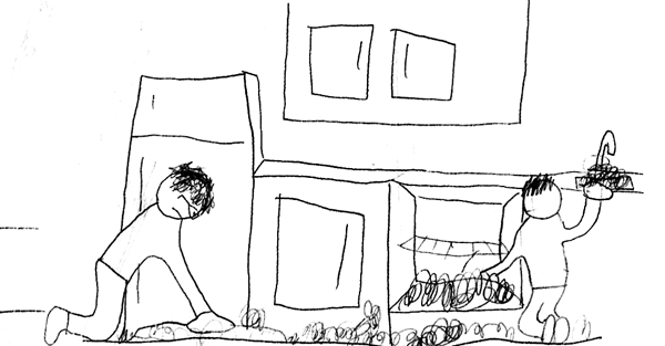 I recently took the challenge to operate the dishwasher for the first time.  My mom was sick in bed with a migraine, so she had to guide me through it verbally.  I ended up putting liquid dish soap instead of regular dishwasher soap into the soap container.  The result: SUDS, SUDS EVERYWHERE.  I alone spent about an hour cleaning up the initial mess.  My brother Noah helped me some – he worked hard scooping suds out of the dishwasher until he found a way to do drain it.  I have taken the liberty to construct a drawing of the scene; I hope you enjoy it: